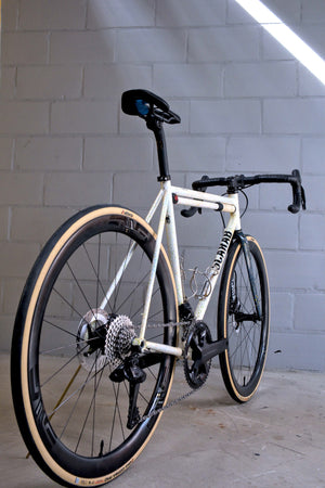 When designing the Letras disc, Our goal was to keep the low weight and exquisite feeling of the rim brake version. To achieve this, we kept some elements that are non standard to all disc brake bikes. Skinny rear stays, 34mm head tube and a 1-1/8 straight steerer tube. this basically transitioned the beloved DNA of the original version into a modern platform. Fitting 32mm tires and disc brakes.