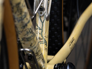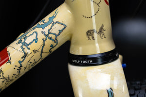 The SCARAB Magdalena paintscheme draws inspiration from a solo bikepacking trip through Colombia, capturing the essence of the Andes and the Magdalena River. This special edition design reflects the rugged beauty and challenges of the Colombian landscape. Intricate lines and patterns symbolize the network of dirt tracks and colonial paths, representing a journey from mountains to valleys.
