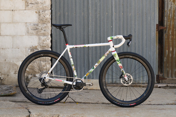 Tropical Cliché, a twist on our Jungla paint scheme, adding more “air,” (or white space) to the body of the patterns, and camouflaged flora and fauna among bolder colors. Tropical Cliché is an homage to the Chocó Jungle in Colombia, a magical place where the mountains meet the Pacific Ocean, it’s one of the most biologically diverse locations on earth. The paint job pays tribute to the wildlife that makes this place unique. Fun depictions of animals and plants invite observers to dive deep and discover the details that nature has to offer.