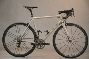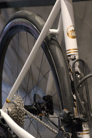 The newest version of Santa Rosa that merges modern looks of fully integrated cockpits, with a very broad tire range that allows us to optimize the bike for the rider’s needs. The ENVE In-Route system provides an increased tire clearance of up to 700cx35 (measured and if requested during the desing process). It comes fitted with Thru-axles and a T47 bottom bracket shell.